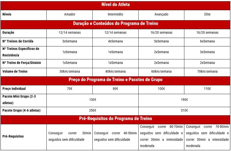 Escolhe o Programa de Treino adequado ao teu Nível e Disponibilidade.